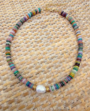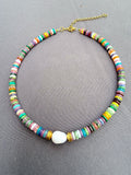 The Aisha Necklace - Multicolor Beaded Gemstone Choker with Freshwater Pearl
