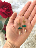 These pretty dangle earrings hang approximately 2.50" inches from the lobe and measure about 0.50" inches across their widest point. The fishhooks are nickel and lead free and should be suitable if you have a metal allergy or sensitivity. These earrings are lightweight and easy to wear.