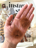 These diamond shaped gold hoops feature a light brown furry pom pom dangle. They are sure to add a fun pop of color and playful texture to your outfit. These earrings are also available in fuchsia pink, royal blue, red, and tan - please see my other listings to purchase.