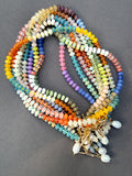 These beaded gemstone necklaces are all about color and charm—literally. Each necklace features a unique blend of 4–5 hand-selected gemstones, separated by tiny Miyuki seed bead spacers for a playful, polished look. Finished with a sleek front toggle clasp and a dangling 10mm freshwater pearl, this piece makes a statement whether worn solo or layered.
