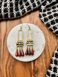 This collection is inspired by the mixing of neutral tones. The key components include amber lucite teardrops and faceted, Dzi agate, black and white striped rondelle beads. Each piece is lovingly designed and crafted by hand.