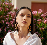 This listing is for large rattan and raffia tassel statement earrings. They hang approximately 5 inches long and measure about 1.5 inches across their widest point.