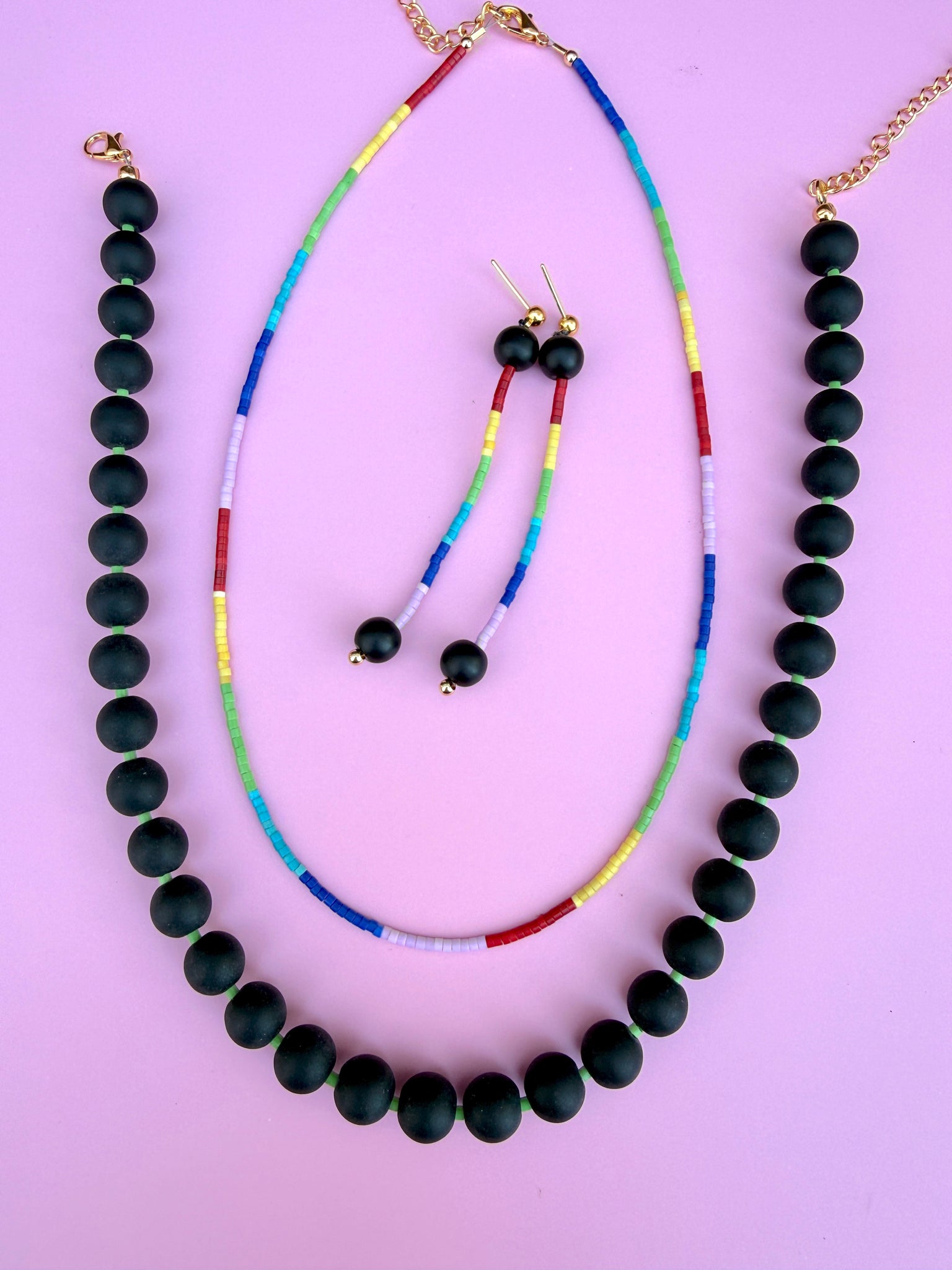 Designed to be worn often, the Onyx Uprising Necklace works beautifully as a foundation piece in your necklace stack. It pairs especially well with the Colorblock Cascade Necklace (sold separately) for a bold layered look.