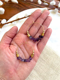 This listing is for 35mm gold filled beaded wire hoops featuring Amethyst chip beads, brass tube beads, and hematite beads.