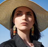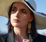 These bold, bohemian statement earrings hang approximately 3.25" inches from the lobe and measure about 0.6" inches across their widest point. The leverback closures are real gold plated and nickel-free.