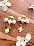 These earrings hang approximately 3.5" inches from the lobe and measure about 1.75" inches across their widest point. The fishhook earring closures are 18k gold plated and nickel-free.