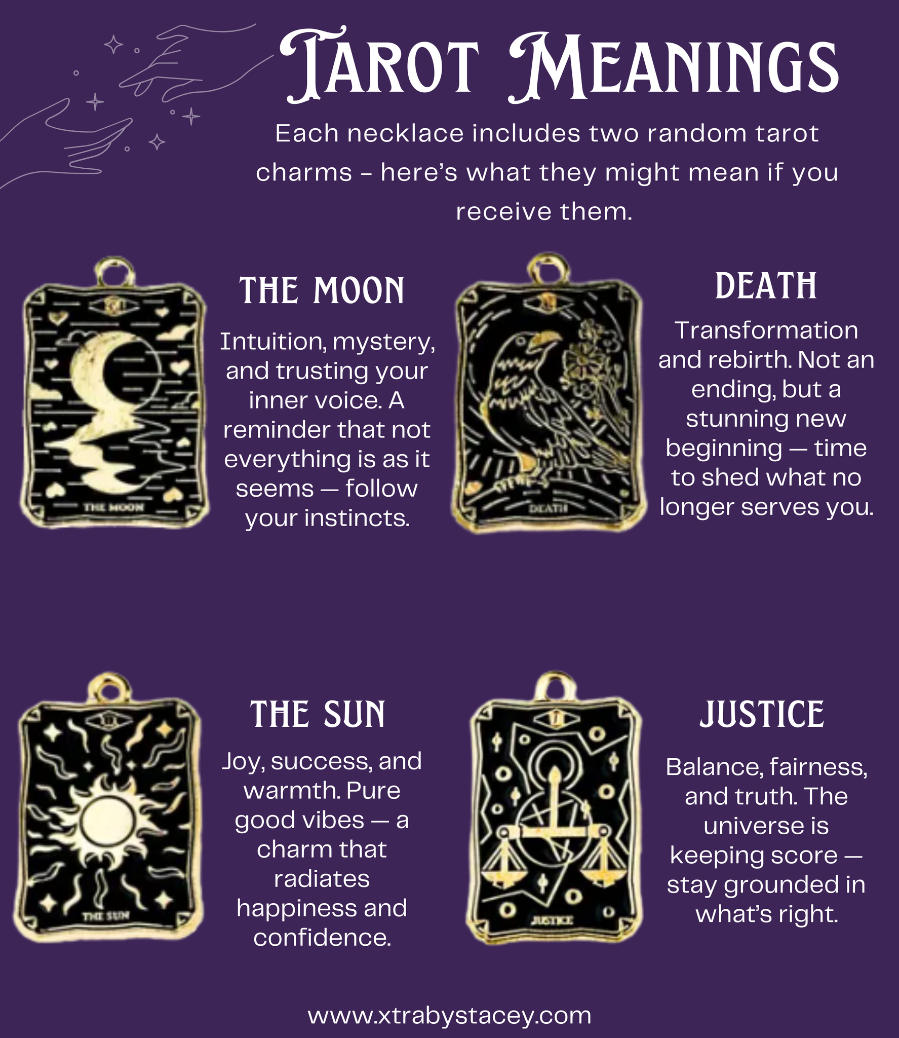 Each necklace includes two randomly selected tarot charms (may differ from photos).